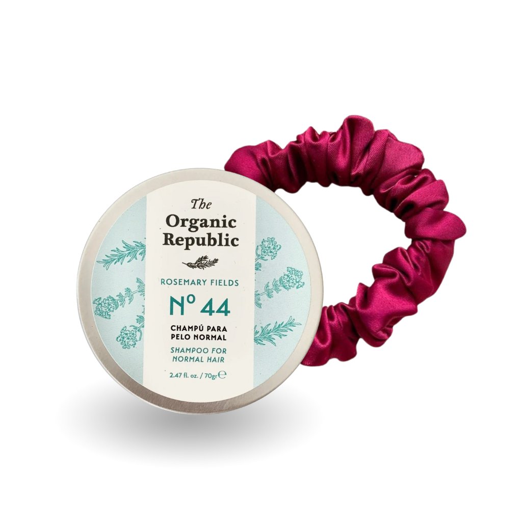 Tento balíček obsahuje: Šampuk pro normální vlasy od The Organic Republic a Gumičku z elastického saténu od Scrunchie by Terrie.